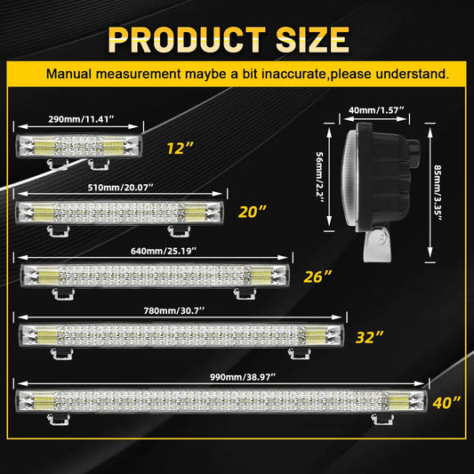 3-Row Light Bar 90000LM Flood Spot 12"20"26"32"40"
